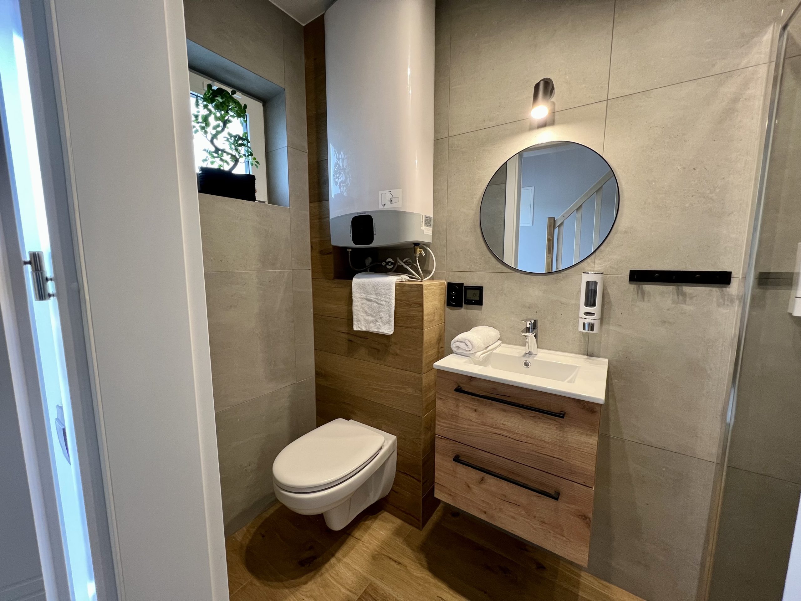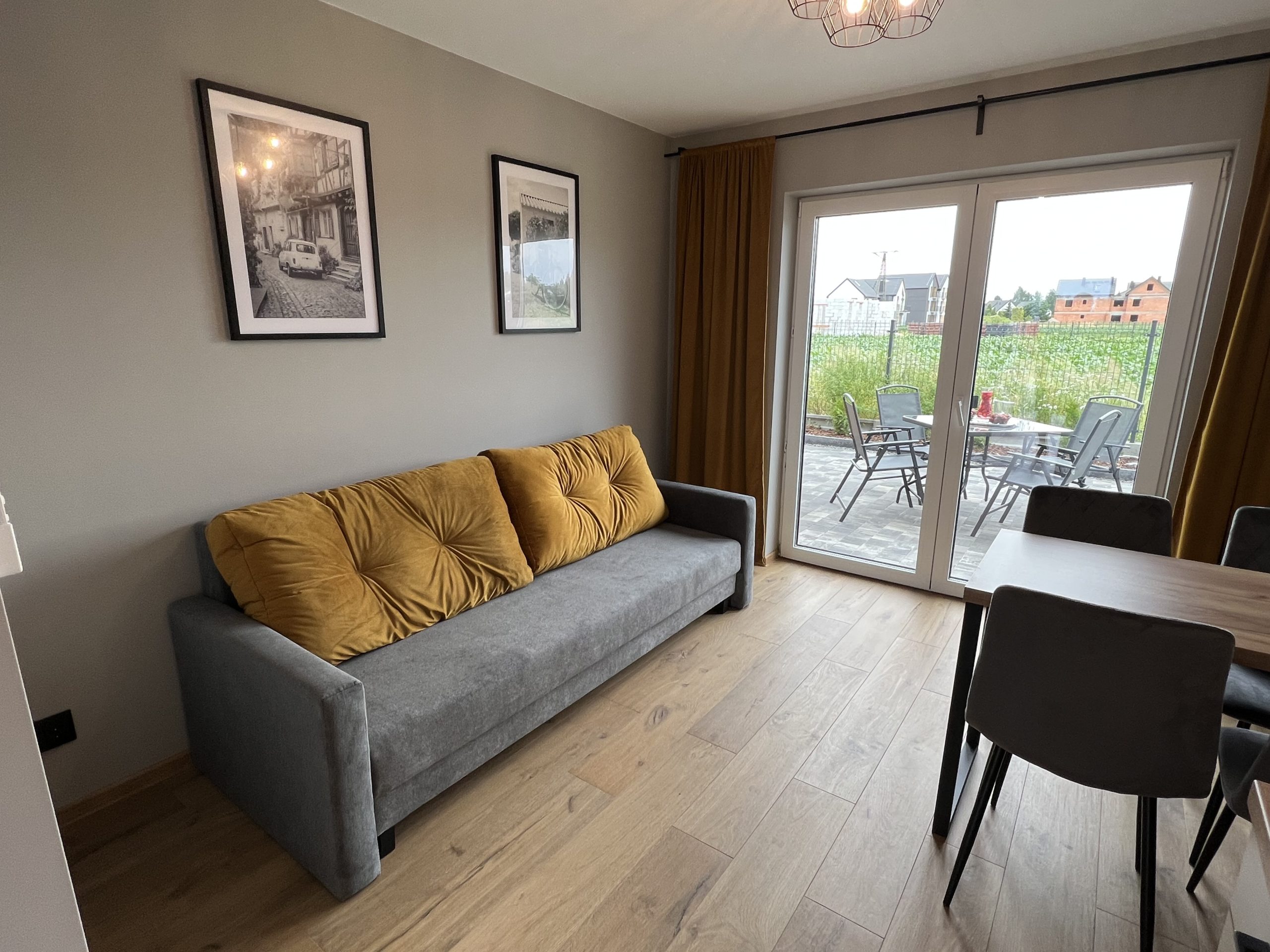 Apartamenty są dwupoziomowe i mają powierzchnię 36m2, każdy apartament ma własny taras wypoczynkowy. Dbamy o komfort naszych Gości, dlatego też w naszym obiekcie znajduje się wiele dodatkowych udogodnień. Oferujemy bezpłatny dostęp do WiFi, dzięki czemu możecie być w kontakcie ze światem. Na terenie obiektu dostępne są również monitorowane miejsca parkingowe, które umożliwiają wygodne parkowanie.